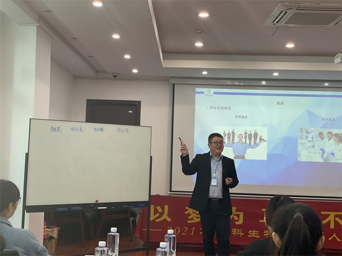 江蘇盈科生物制藥有限公司于2021年10月29日開展職場新人職業(yè)規(guī)劃培訓(xùn),培訓(xùn)對象是近期加入公司的高校實習(xí)生和2021年應(yīng)屆高校畢業(yè)生,本次培訓(xùn)由人力資源部總監(jiān)王鶴先生擔(dān)任講師,以織夢、蛻變、起航三個模塊為主,從職業(yè)愿景、職業(yè)目標(biāo)、職業(yè)發(fā)展規(guī)劃等方面讓“職場小白”們盡快進(jìn)入工作角色、融入企業(yè)、明確未來發(fā)展方向。